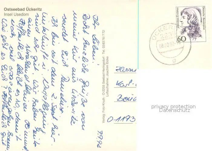 ueckeritz_Usedom Fliegeraufnahme ueckeritz Usedom postalisch gelaufen 1992 Erhaltung siehe scans [WerneD78] WernPID7