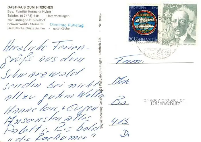 uehlingen-Birkendorf Gasthaus Zum Hirschen Terrasse Panorama uehlingen-Birkendorf postalisch gelaufen nach 1965 Erhaltung siehe scans [WerneD78] WernPID7