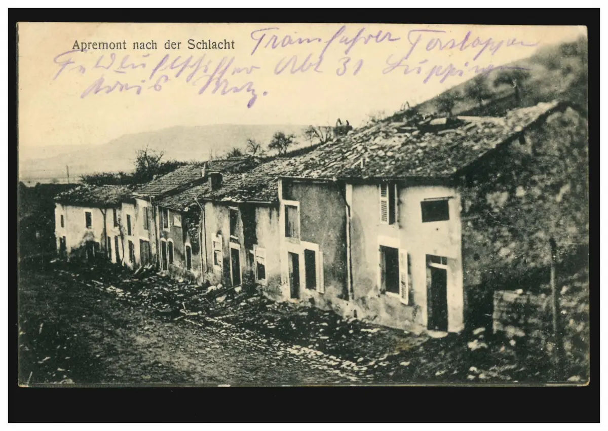 AK Apremont après la bataille, Fedpost FELDLUTNATHER-Division 31-1915