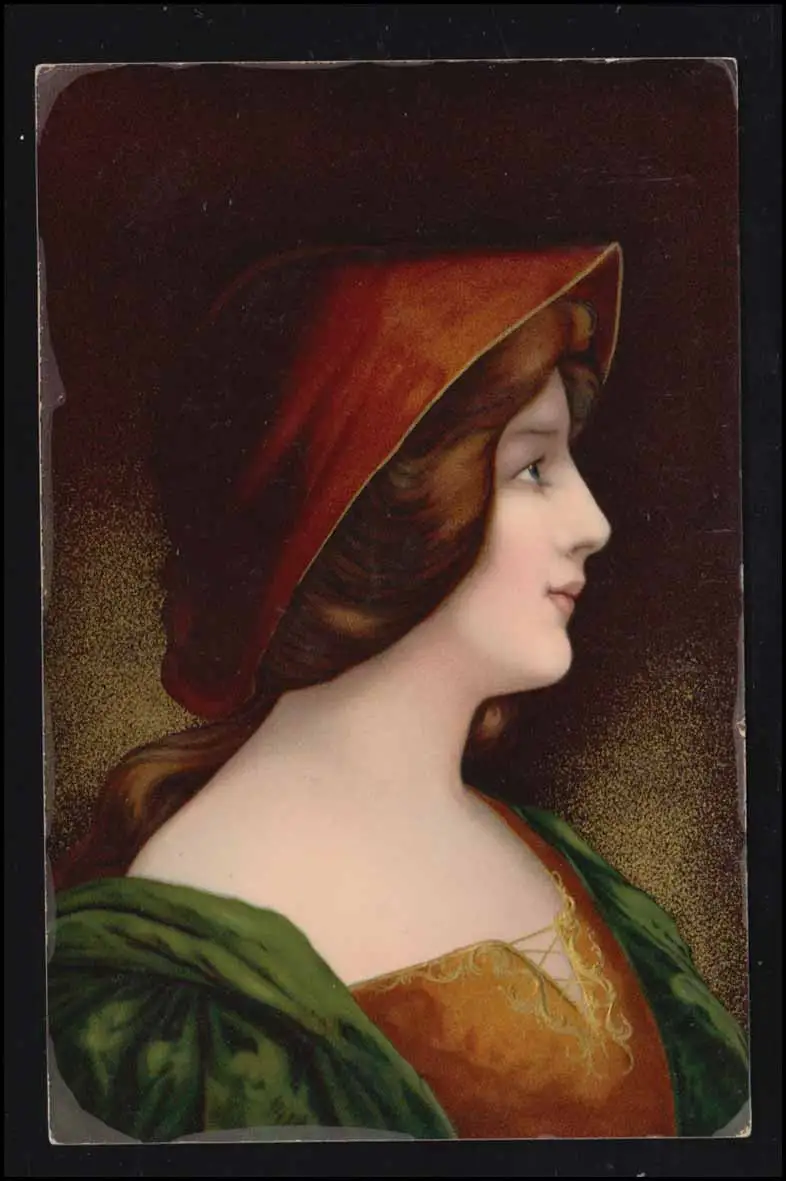 AK Artiste Beautés classiques: femme avec chapeau rouge, LEIPZIG 5.6.1912