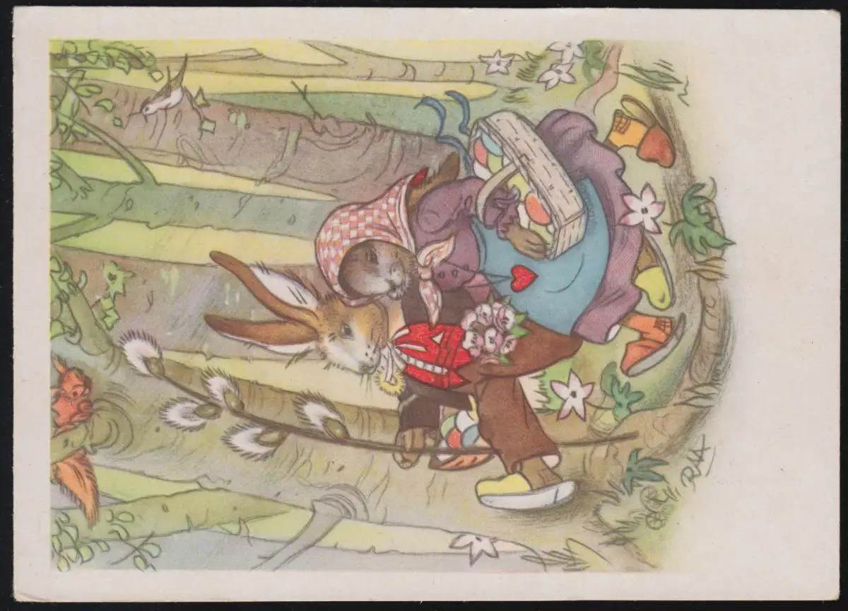 AK Artiste Charlotte Baron: Pâques - Paire de lapins non utilisés