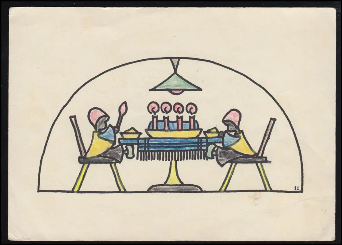 AK Artiste Elsbeth Weyel Cartes postales: Enfants mangeant à table, WANKUM 16.3.59