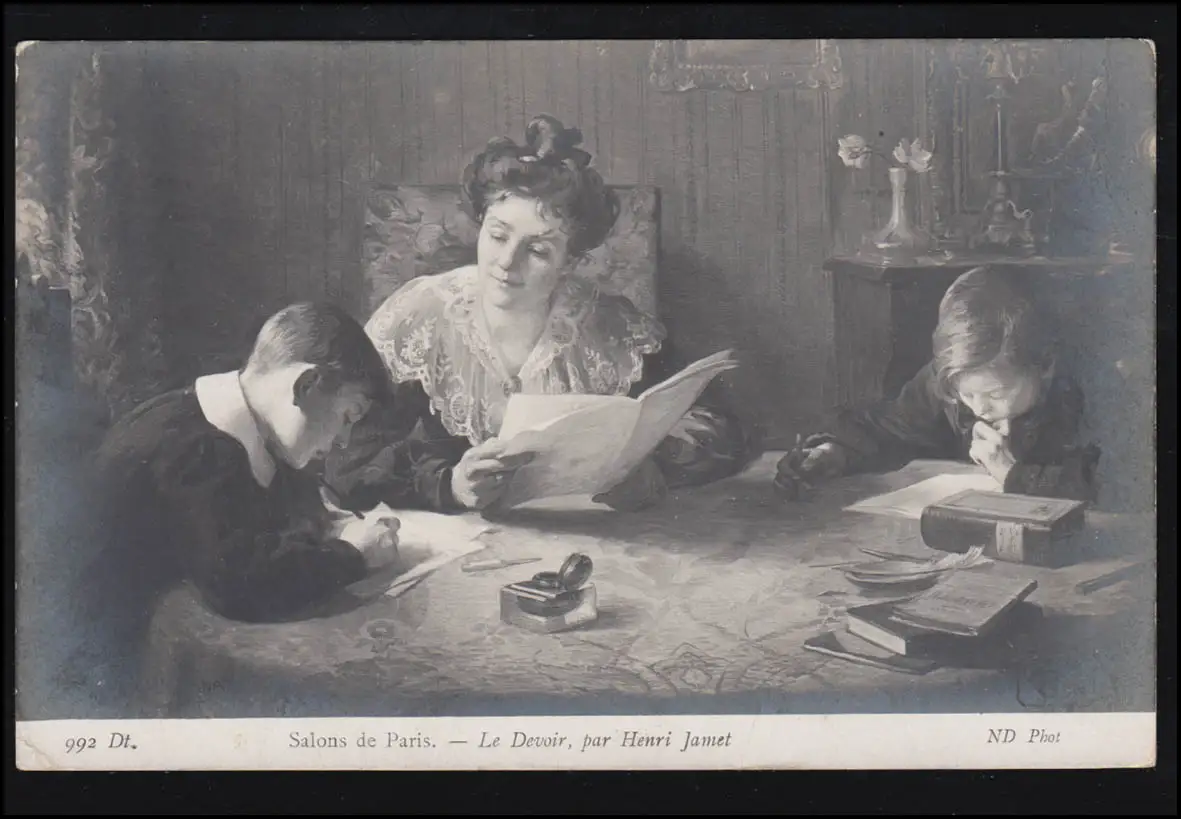 AK Artiste Henri Jamet: L'obligation - devoirs de lecture Écrire, WIENNE 1908