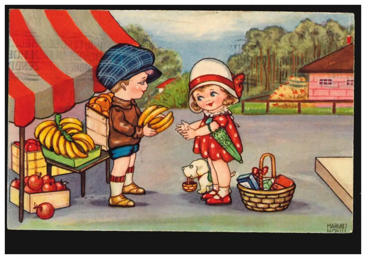 AK Artiste Margret Boriss: Marché - Acheter des bananes, édition Amag, couru en 1932