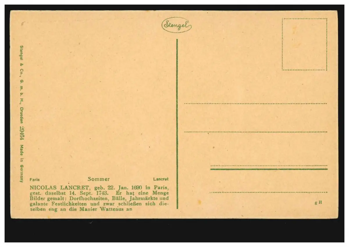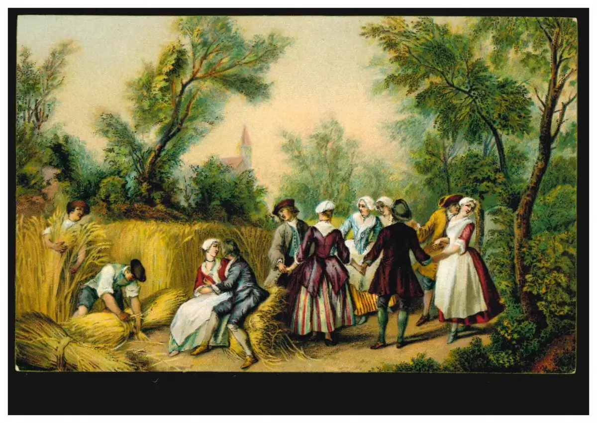 AK Artiste Nicolas Lancret: Été - récolte de céréales avec danse de groupe, inutilisé
