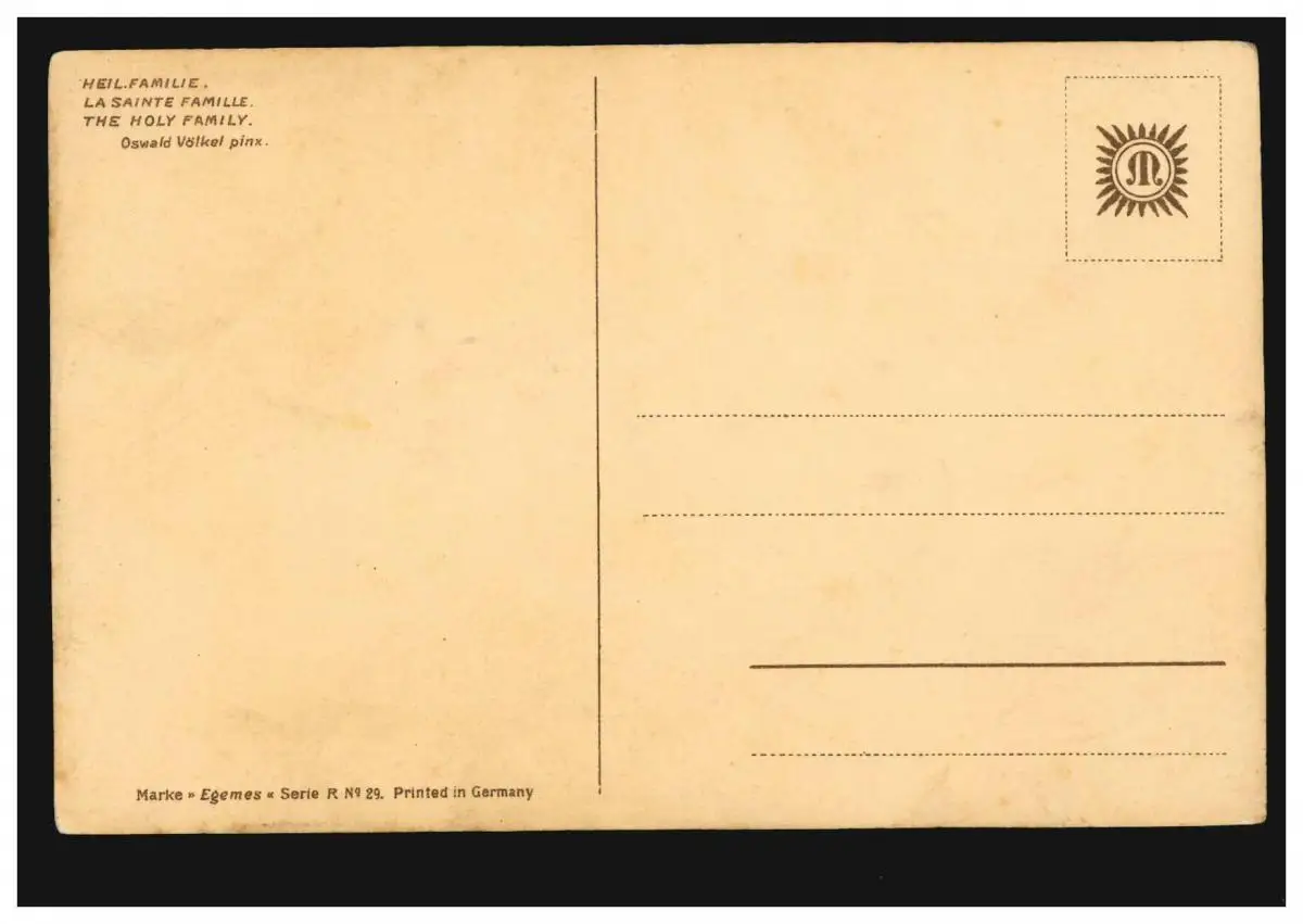 AK Artiste Oswald Völkel: La Sainte Famille, Édition Egèmes, inutilisé