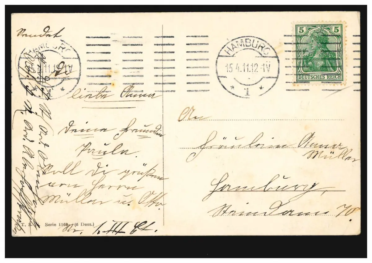 AK Artiste Pâques Enfants avec coq et chaton de pâture, HAMBURG 15.4.1911