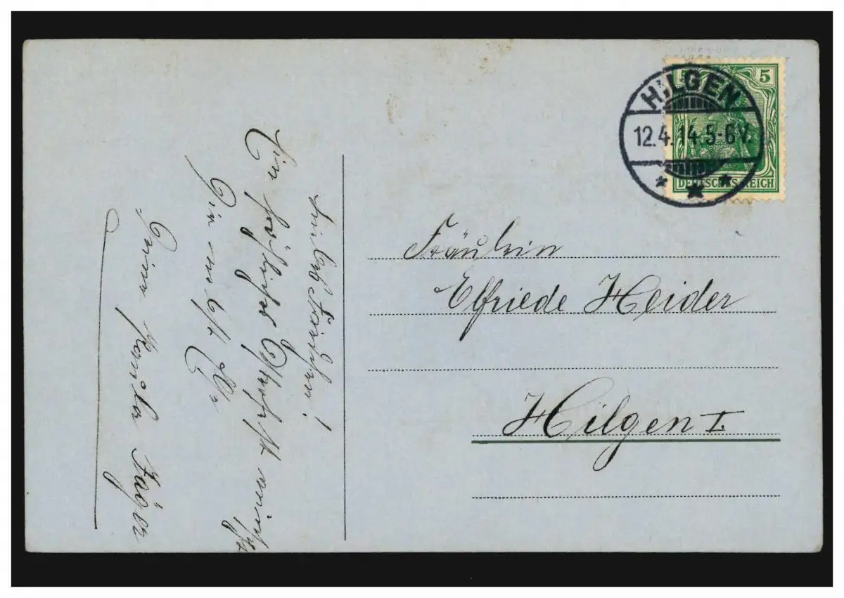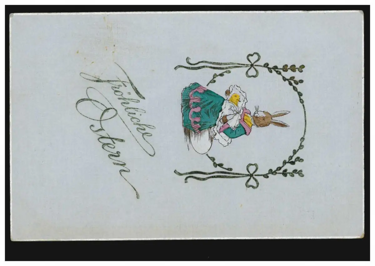 AK Artiste Pâques Lièvre humanisé avec poussins, PK local HILGEN 12.4.1914