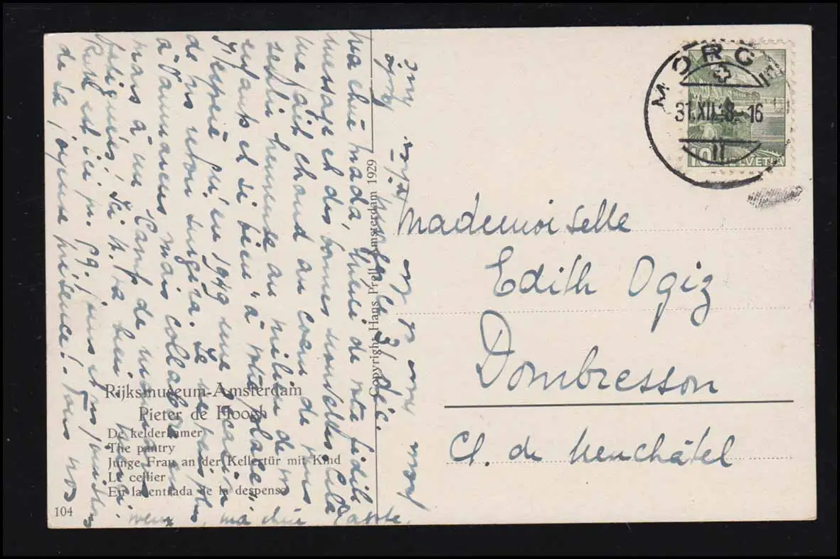 AK Artiste Pieter de Hoogh: A la porte de la cave avec enfant, MORGES 31.12.1938