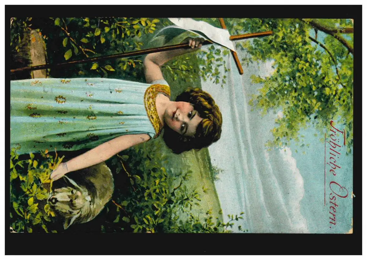 AK Artiste Procession de Pâques Fille avec croix et agneau, MARKT RETTENBACH 25.3.10