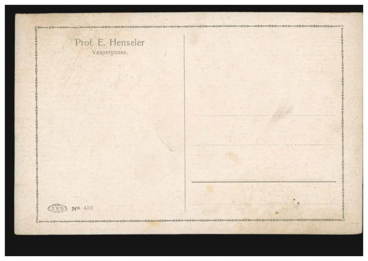 AK Artiste Prof. E. Henseler: Vesperpause, Editeur S.V.D., non utilisé