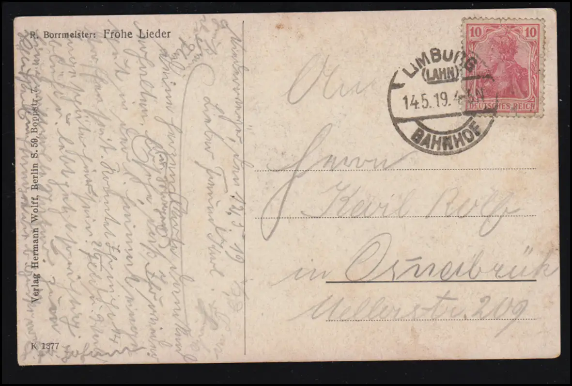 AK Artiste R. Borrmeister: Joyeuses chansons, LIMBURG (LAHN) BAHNHOF 14.5.19