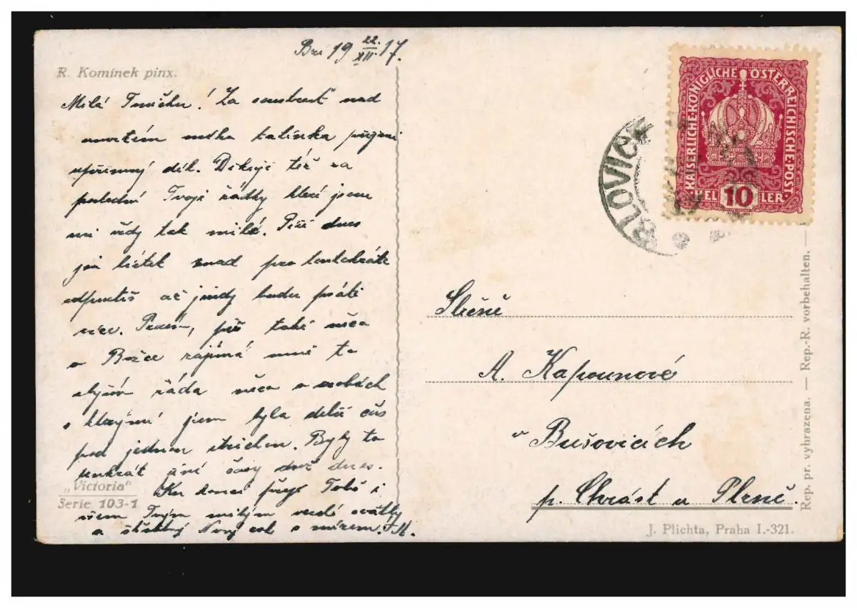 AK Artiste R. Kominek: Deux femmes en costume dans la forêt d'hiver, couru en 1917