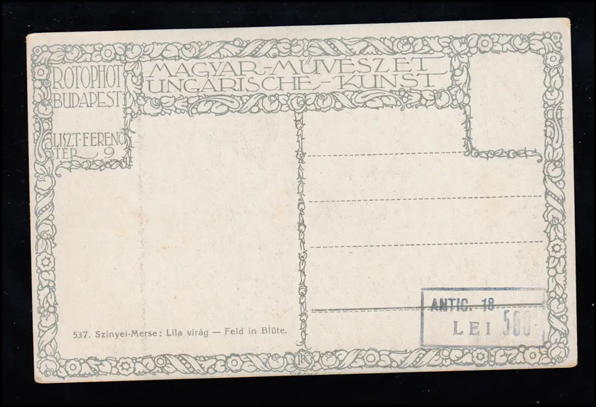 AK Artiste Szinyei-Merse: Champ en fleur, Art hongrois, inutilisé