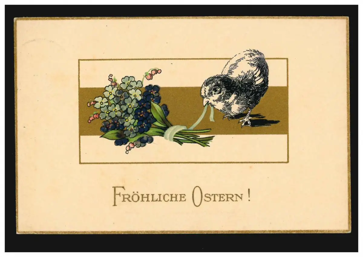 AK Artiste de Pâques Poussins au bouquet de violette, HORN (THORGAU) 17.4.1919