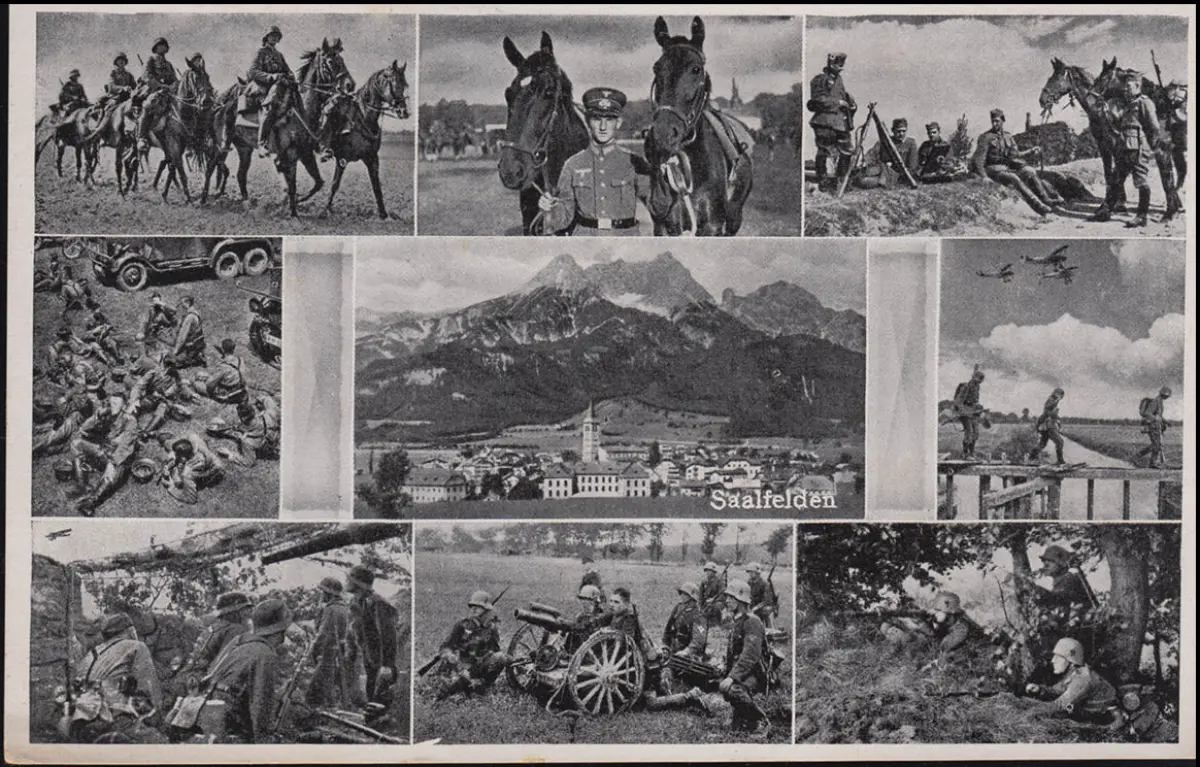 AK Autriche Salenfelden-Panorama avec 8 photos militaires, SSt SAALFELDEN 12.11.40