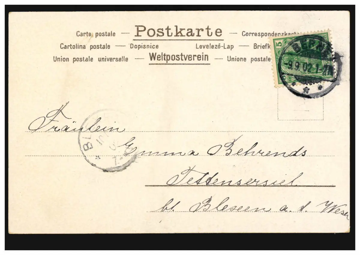 AK Autruche de violette, poème: Mon horreur "Je pense à toi," BERNE 9.9.1902