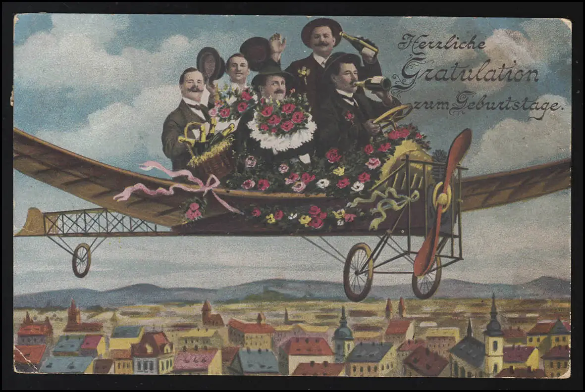 AK Aviation Hommes Anniversaire Félicitations avion fleurs, POTSDAM 6.10.18