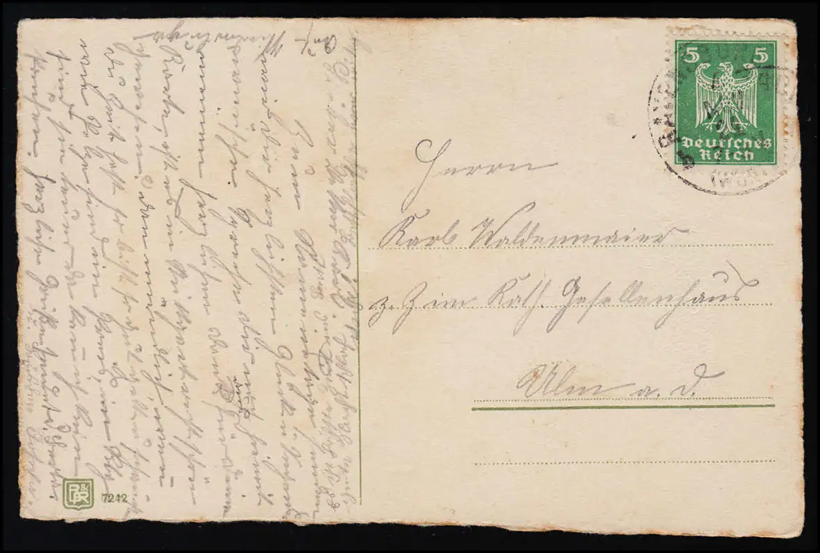AK B & R 7242, jour de nom, couronne avec violette / tulipes, RAVENSBURG 4.11.1929