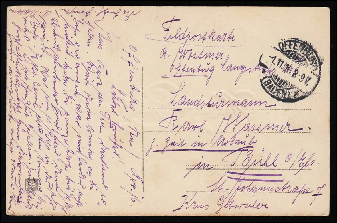 AK B & R Noms de famille, Rosengirlande encadré Félicitations OFFENBURG 1.11.1916