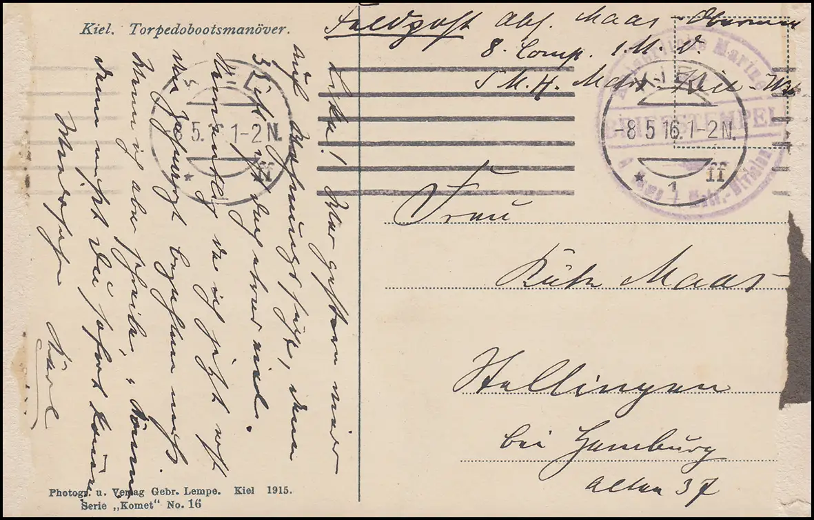 AK BS Marine Impériale I. Division Matr., KIEL 8.5.16, manœuvres de torpilles Ak