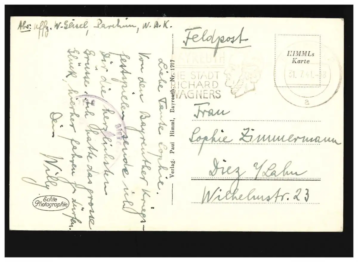 AK Bayreuth Hofgarten avec Nouveau château, Feldpost, 31.7.1941