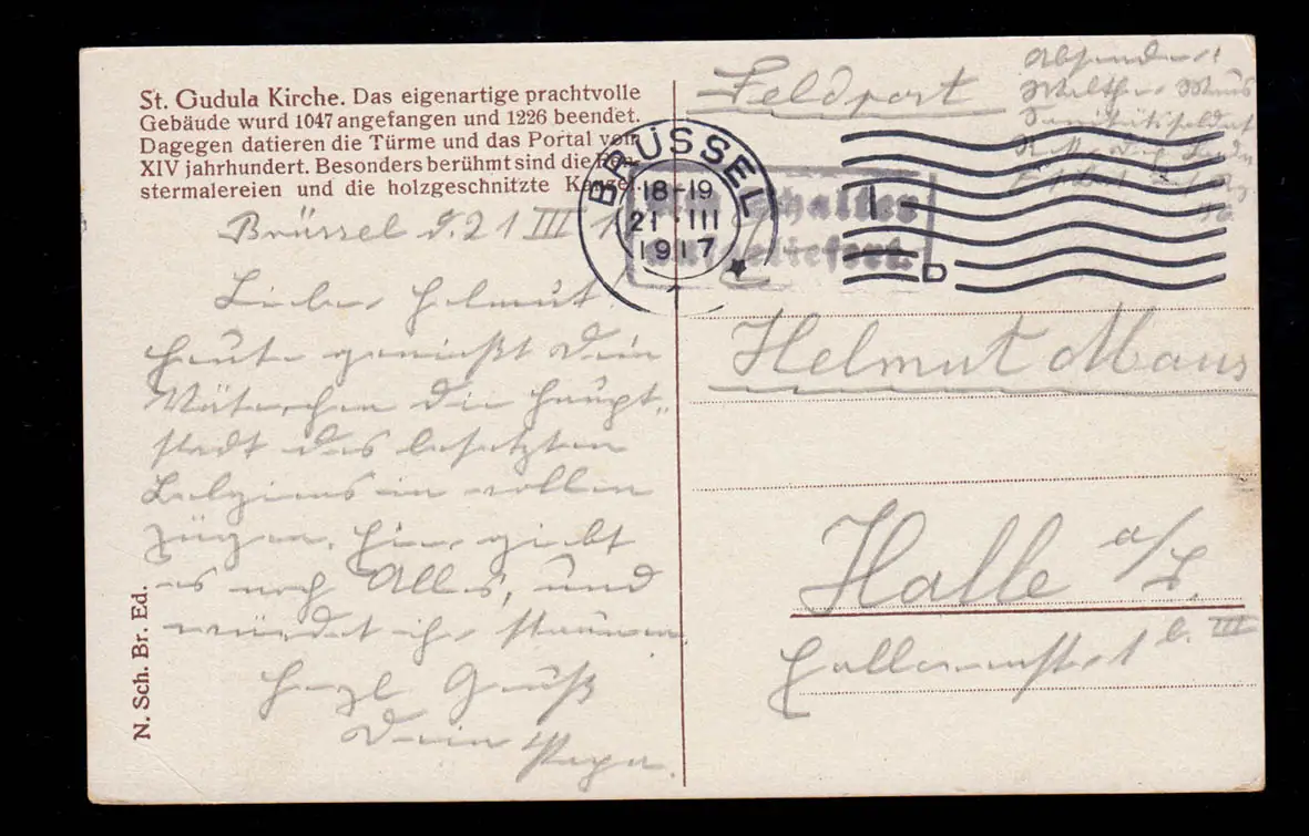 AK Belgique: Bruxelles - Saint-Gudula-Eglise, poste de terrain BRUXELLES 21.3.1917