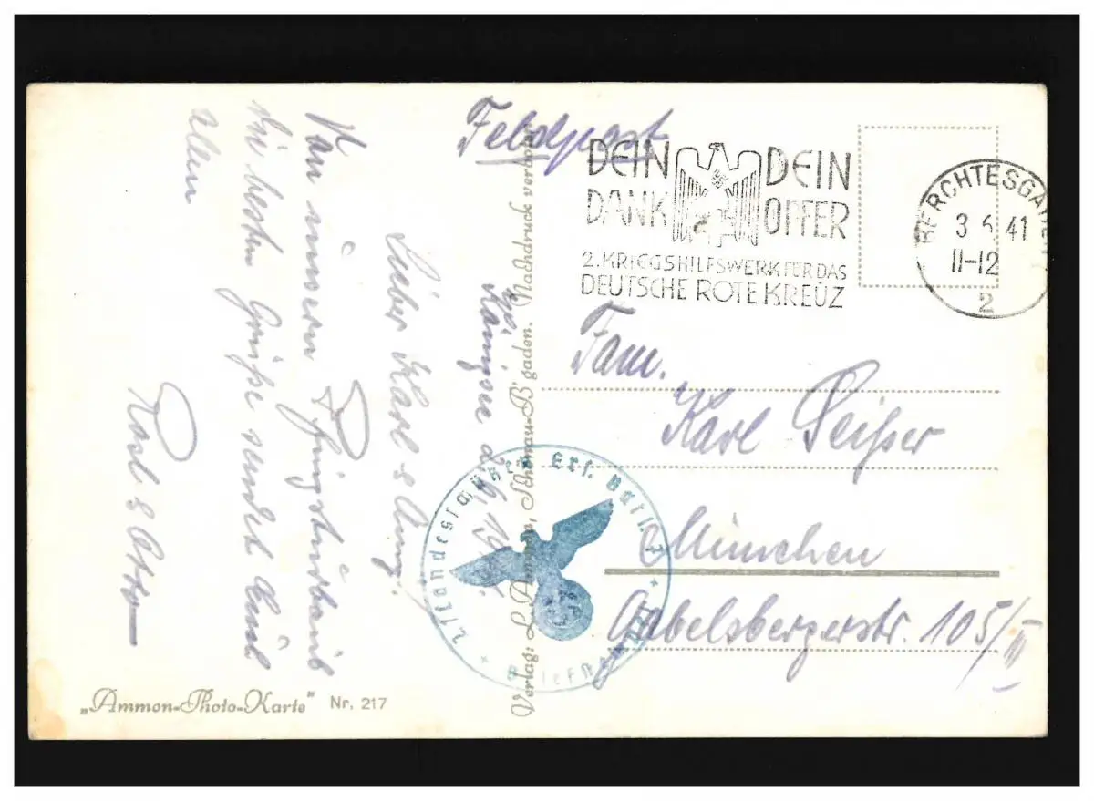 AK Berchtesgaden avec Watzmann, Alpes, Panorama, Feldpost, Bertschesgasgades 3.6.1941
