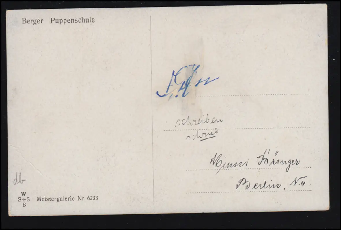 AK Berger Artiste: école de marionnettes, édition W.S.+SB. Galerie de maîtres, marquée