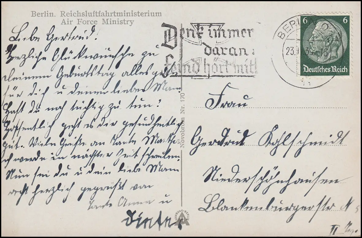 AK Berlin Reichsministerium billingue, BERLIN 23.11.39