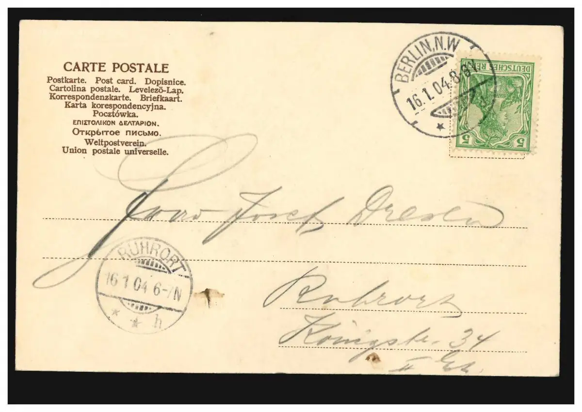 AK Berlin: Siegesallee, 16.1.1904, vers RUHRORT 16.1.04