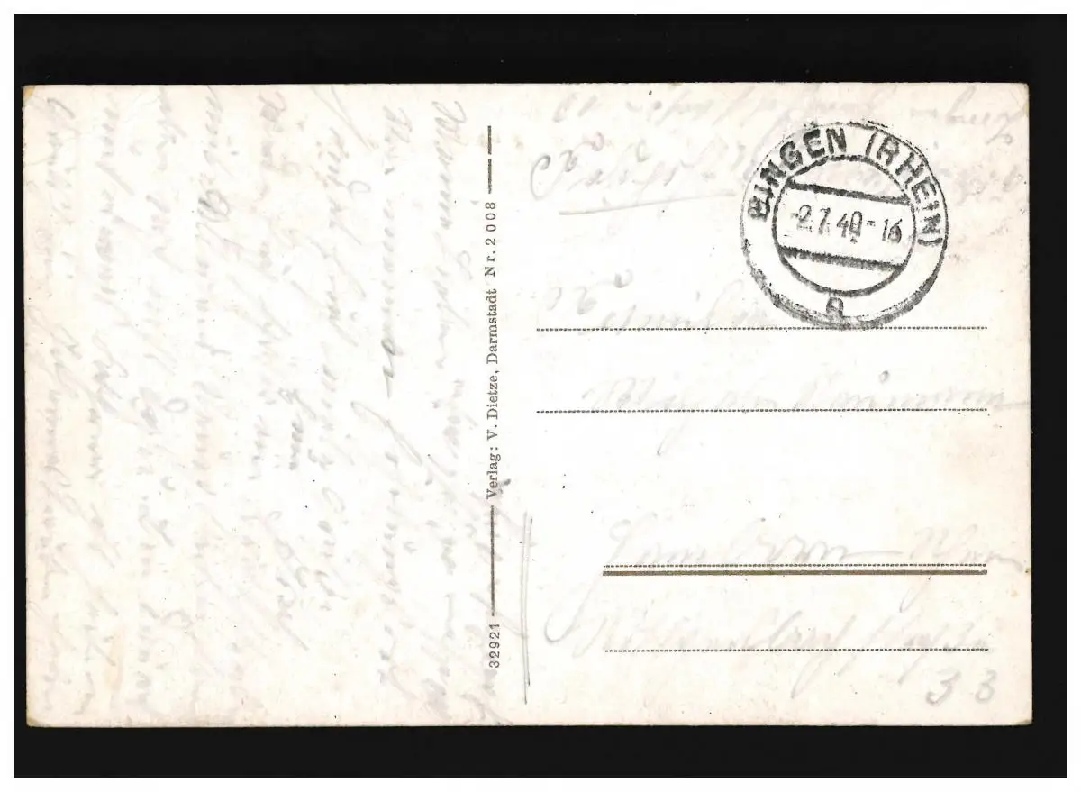 AK Bingen, Bingerbrück am Rhein, Burg Klopp, Feldpost, Beingen (Rhin) 2.7.1940