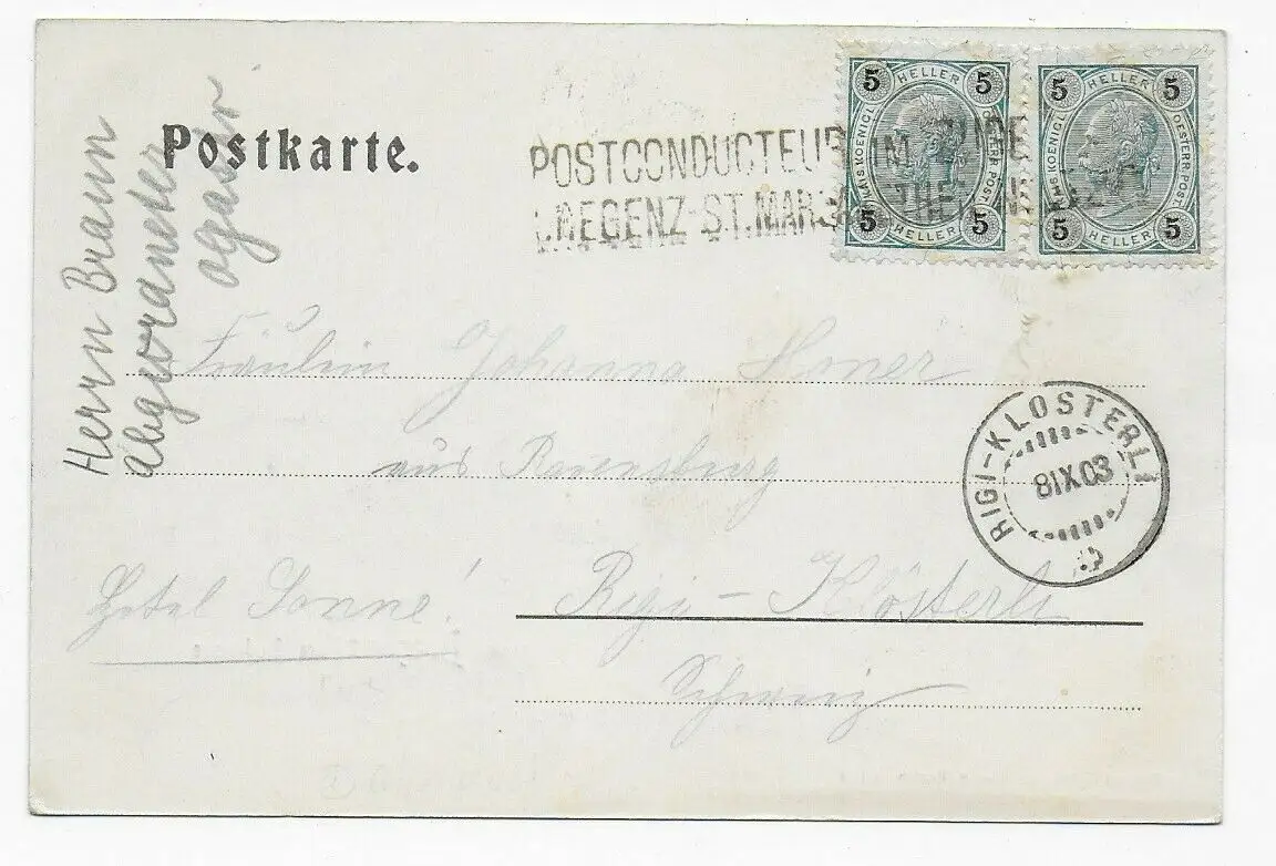 AK Bregenz d'après Rigi-Kolsterli, 1903: Postconducteur Bregerz-St. Margarethen