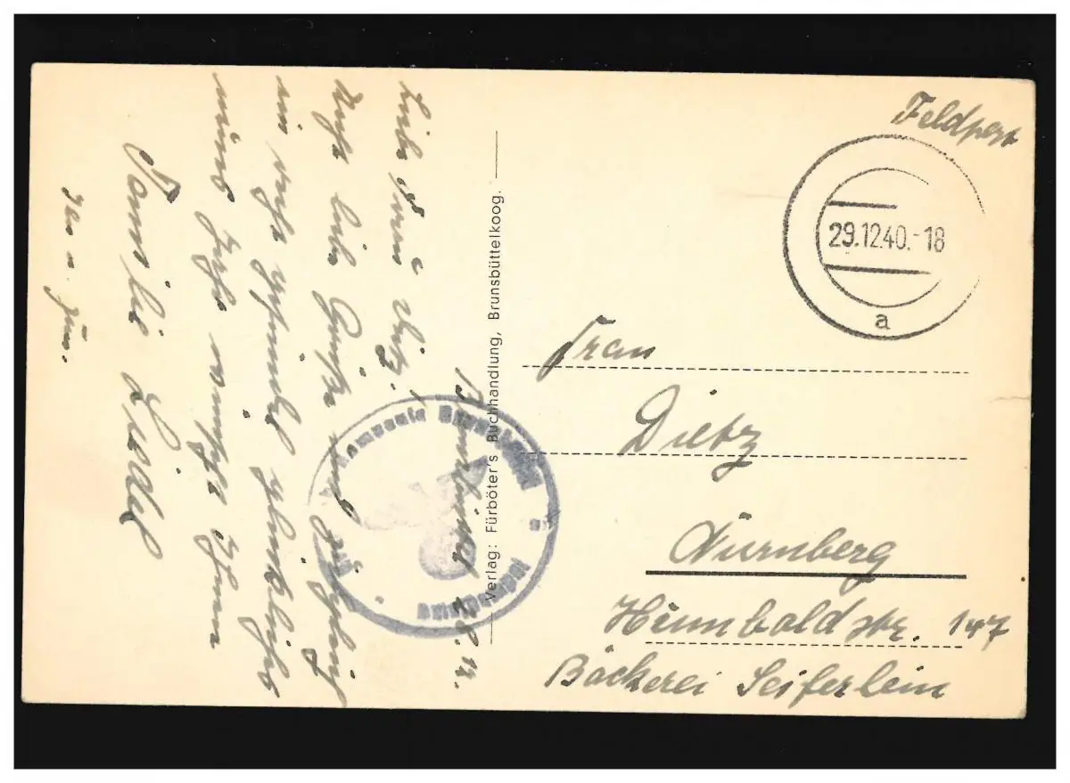 AK Brunsbüttelkoog entrée au vieux port, Feldpost, 29.12.1940