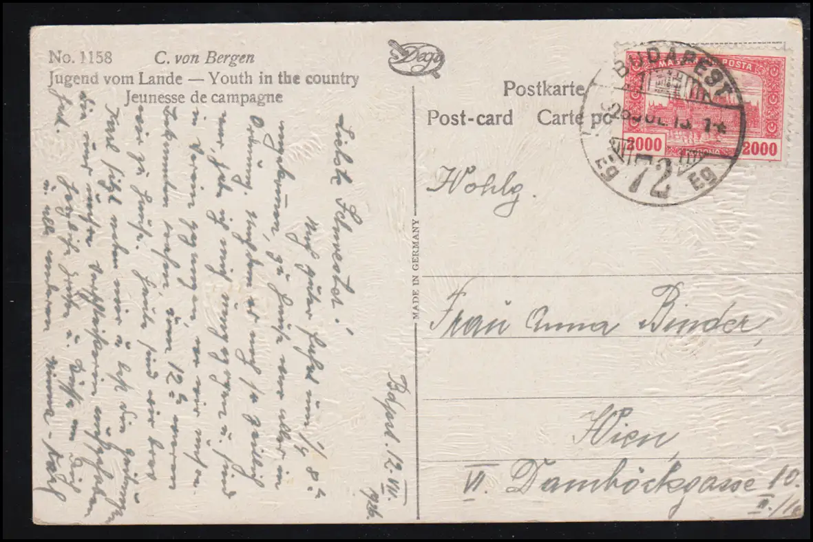 AK C. Artiste de Bergen: Jeunesse de la campagne - Le régime des canards, BUDAPEST 1926