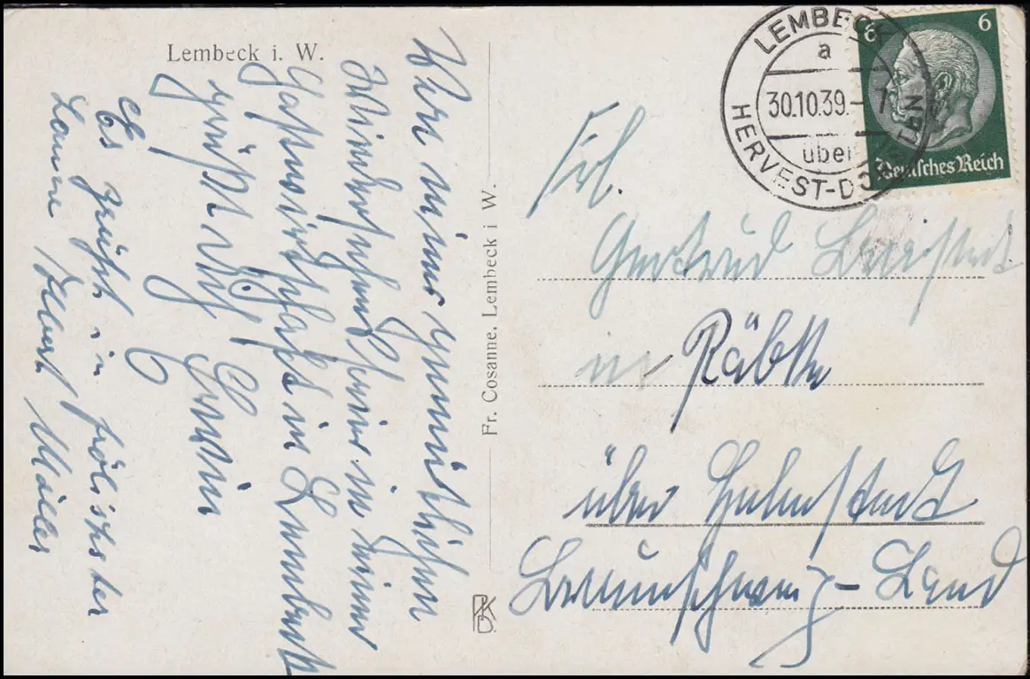 AK Château Lembeck - Vue aérienne, LEMBECK via HARVEST-DORSTEN 30.10.1939