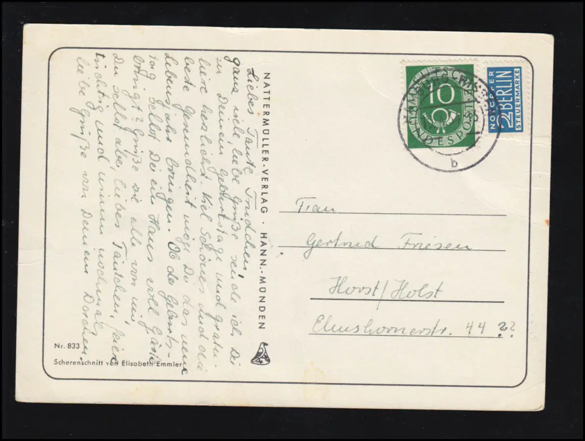 Carte d'ombre noir, édition de Nattermüller, HAMBURG-RICHEN 10.4.1954 Vérification: original Référence produit: 00000000043809>Note: Cet article n'est disponible qu'une seule fois. Vous recevrez exactement l'article représenté.