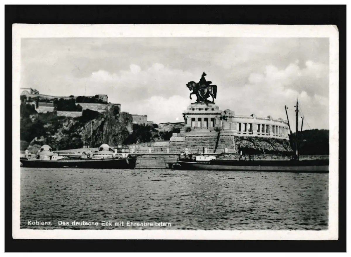 AK Coblence Eck allemand avec Honneurenbreitstein, Feldpost, Niederlahnstein 21.2.44