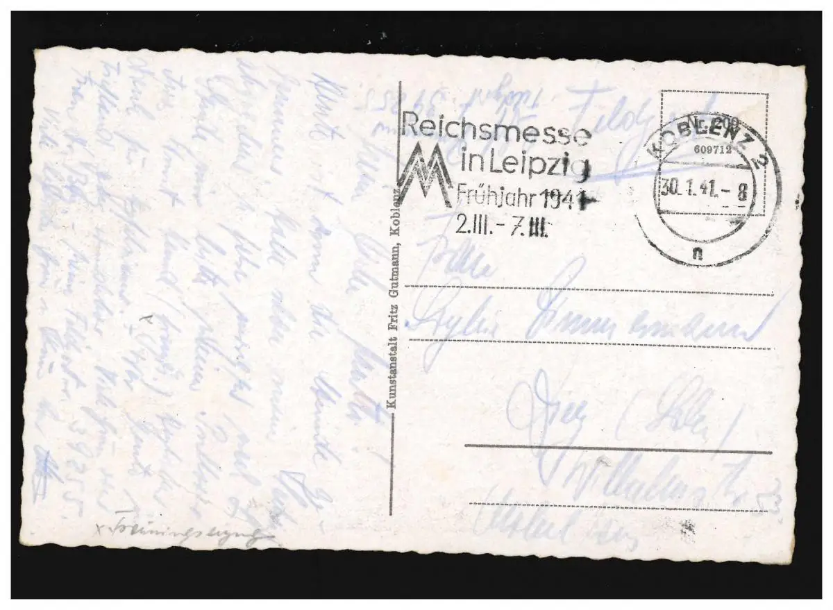 AK Coblence am Rheinufer, Feldpost, Reichsmesse Leipzig, Coblenz 30.1.1941