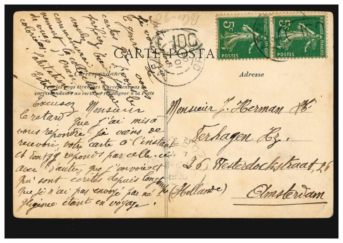 en KYPEW / ORAN 10.7.1908 vers la Hollande Test: original Référence produit: 00000000022913>Note: Cet article n'est disponible qu'une seule fois. Vous recevrez exactement l'article représenté.