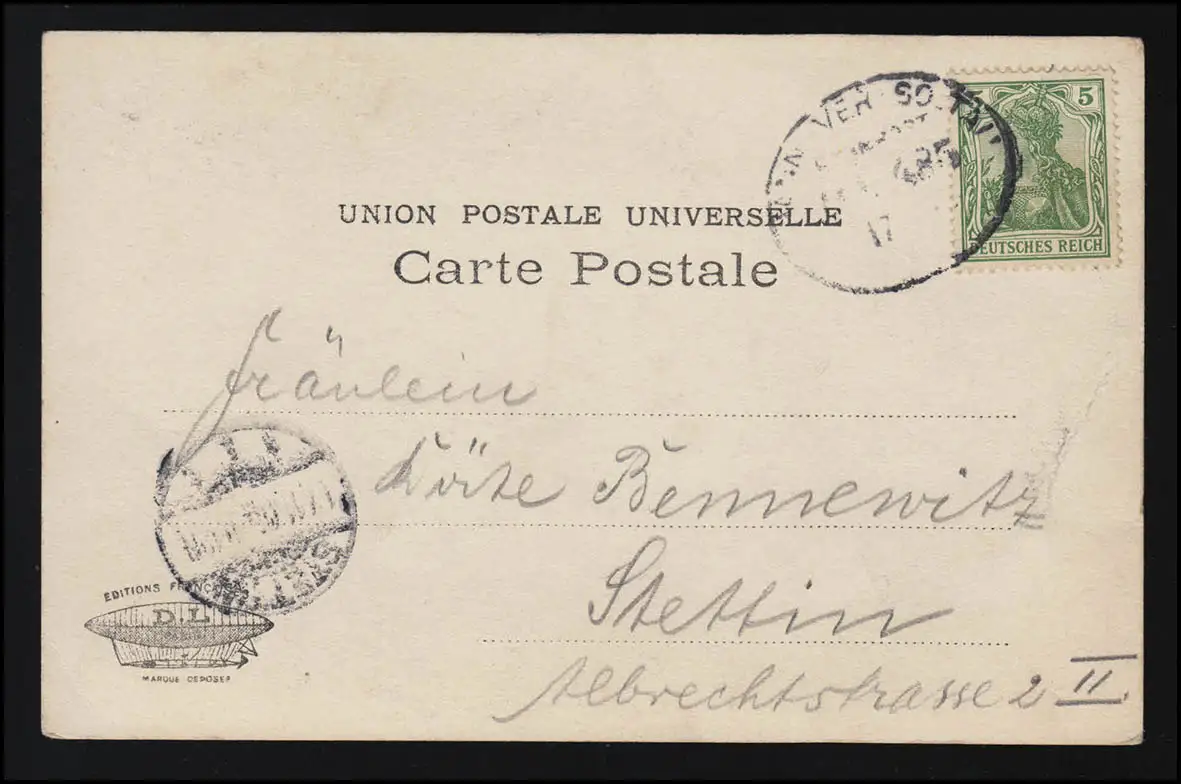 AK D.L. Jeune femme cheveux longs Roses noires Poste ferroviaire SOLATAU /STETTIN 17.11.05