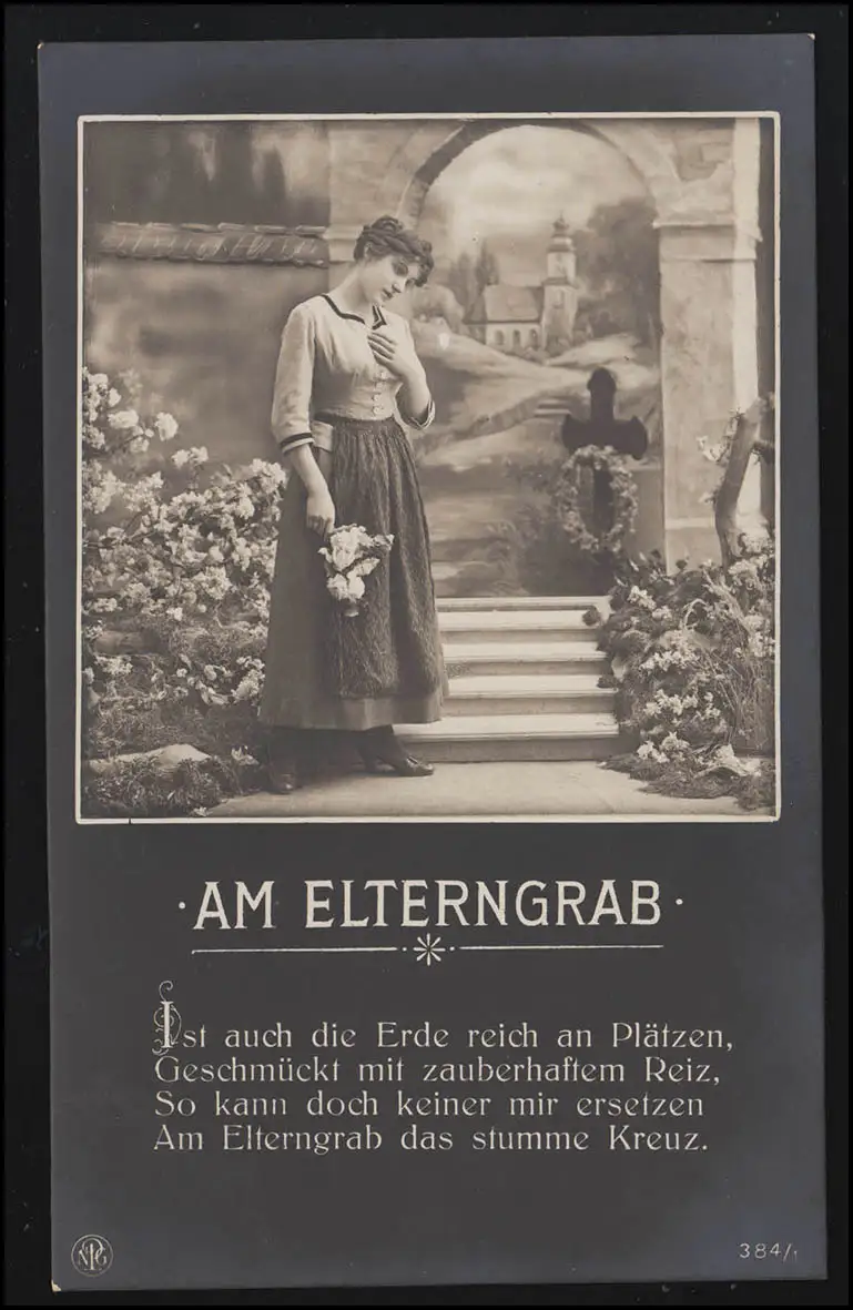 AK Deuil Sur la tombe des parents la croix muette Fleurs souvenirs, inutile
