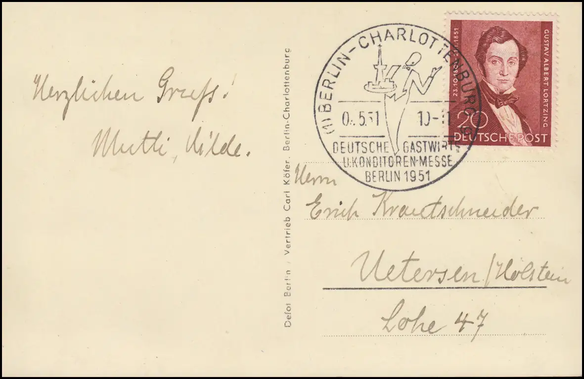 AK Deutsche Gastwirts- und Konditormesse Berlin 1951 pass. SSt BERLIN avec 74