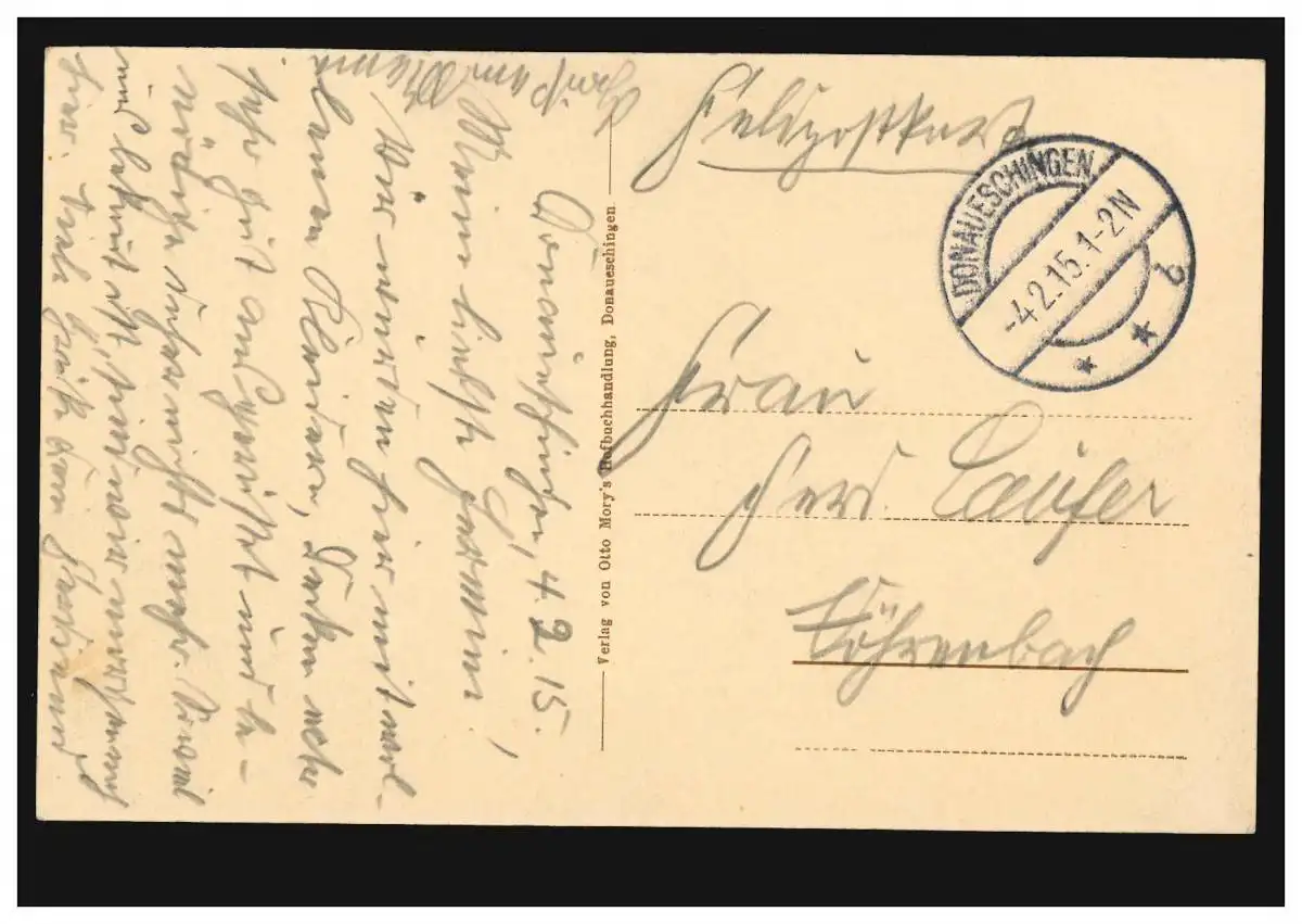 AK Donaueschingen: Château du Prince, poste de terrain DUNAUESCHINGEN 4.2.1915