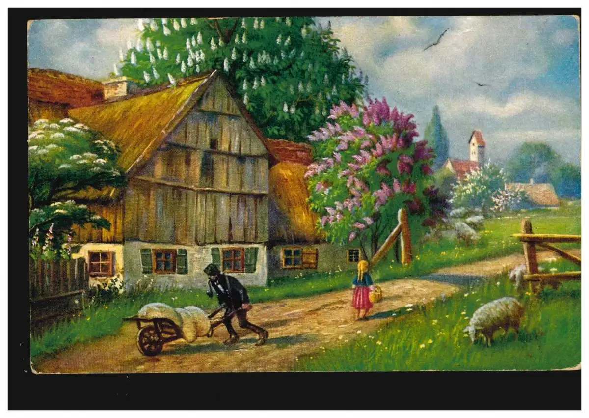 AK Dorfidylle Bauer avec des sacs à farine sur brouette, SAALFELD/SAALE 1915
