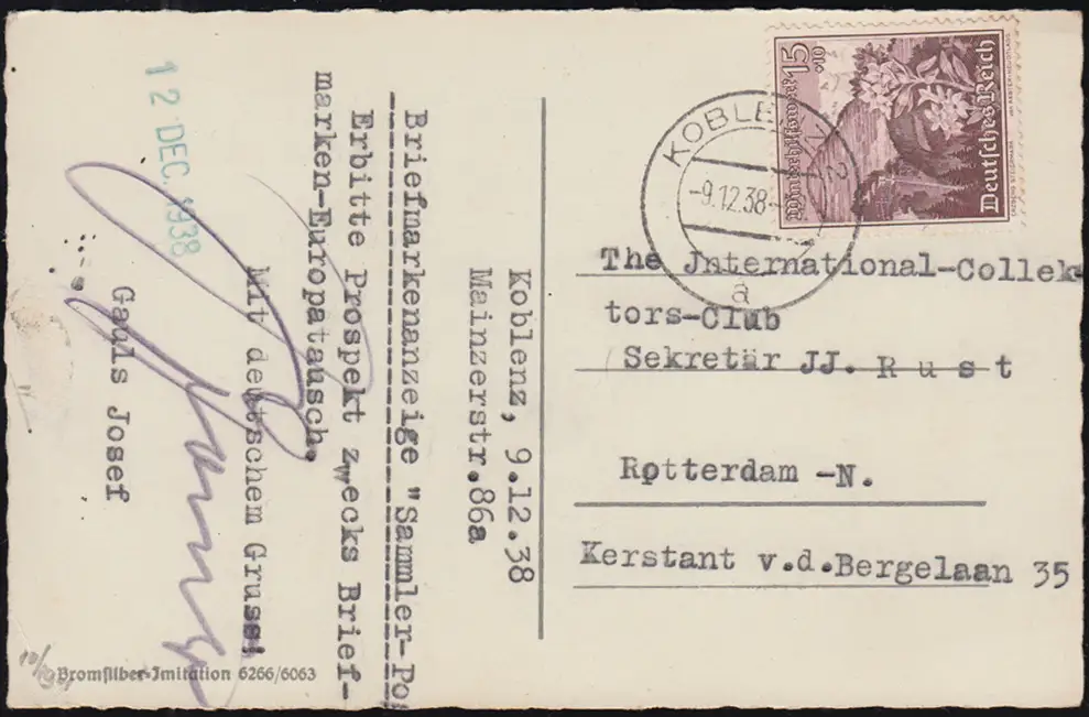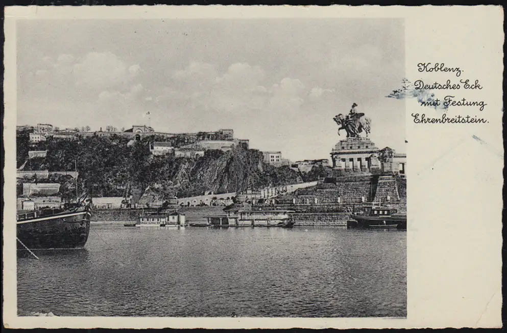 AK Eck allemand avec forteresse Honneur enbreitstein, KOBLENZ 9.12.38 avec EF 681 fleurs