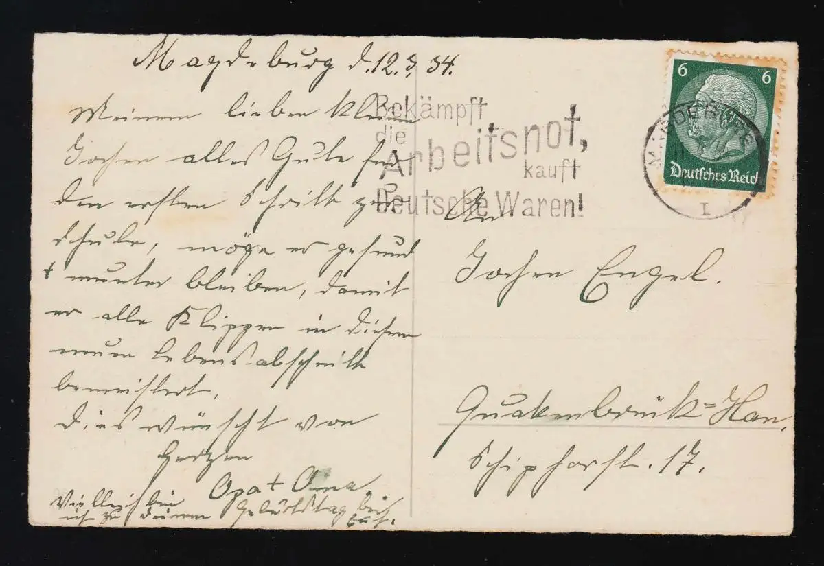 Félicitations pour le premier cours, dos Tampon de propagande " Luttant pour la détresse de travail, acheter des marchandises allemandes ! " examen: original Référence produit: 00000000044106