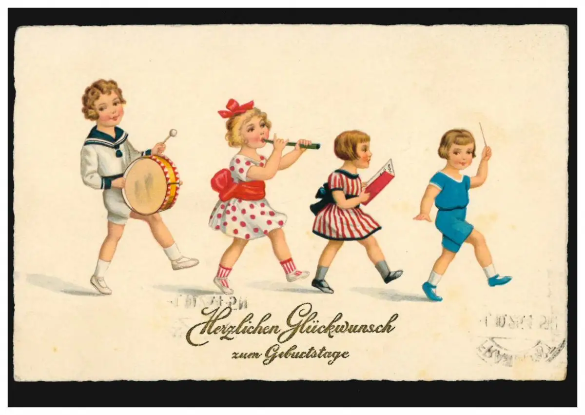 AK Enfants chantant et musicien tambour Flûte Chef, FRANKFURT/MAIN 1925