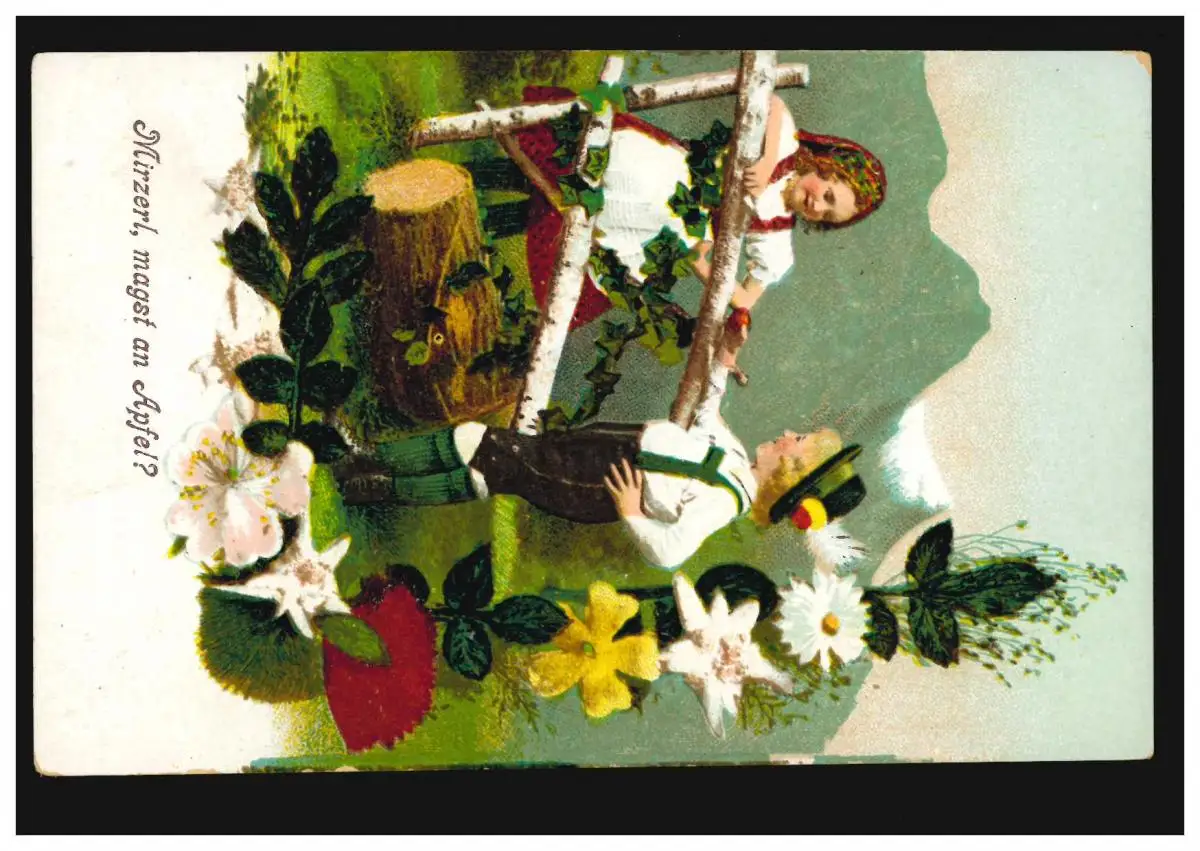 AK Enfants en bavarois: Mirzerl, aimes-tu la pomme? inutilisé