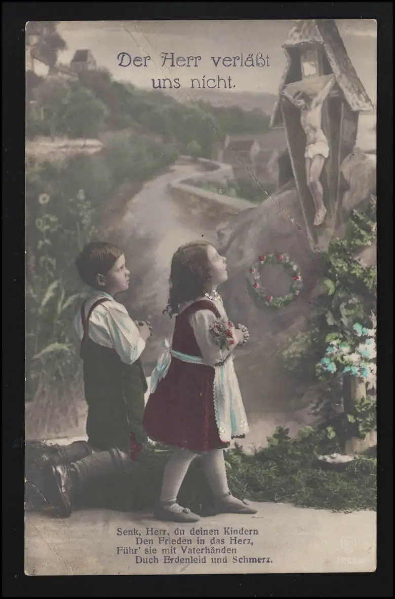 AK Enfants prient Dieu / Jésus "Le Seigneur ne nous quitte pas" LINDAU 3.5.1917